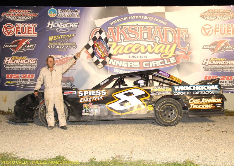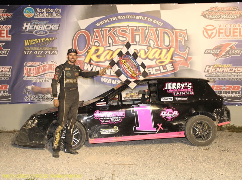 WAUSEON, OH – Oakshade Raceway hosted Autograph/Trick-Or-Treat Night on Saturday evening. Many kids in costume gathered up as much candy as they could during intermission. In addition, a local sponsor that wishes to remain unnamed added extra money to the feature events in all three classes highlighted by Roman Brown’s third DCR Graphics Sportsman feature in of the year.
